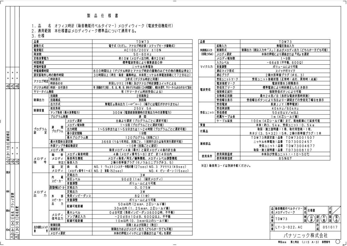 TDGP74 パナソニック 音響設備 メロディウィーク オフィス時計 電波受信機能付