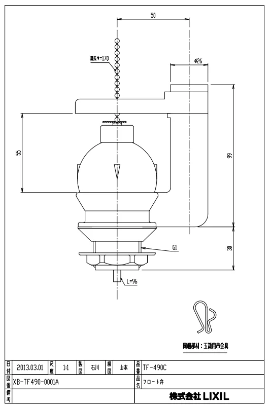 TF-490C LIXIL / INAX フロート弁 トイレ部品 [TF-490C]