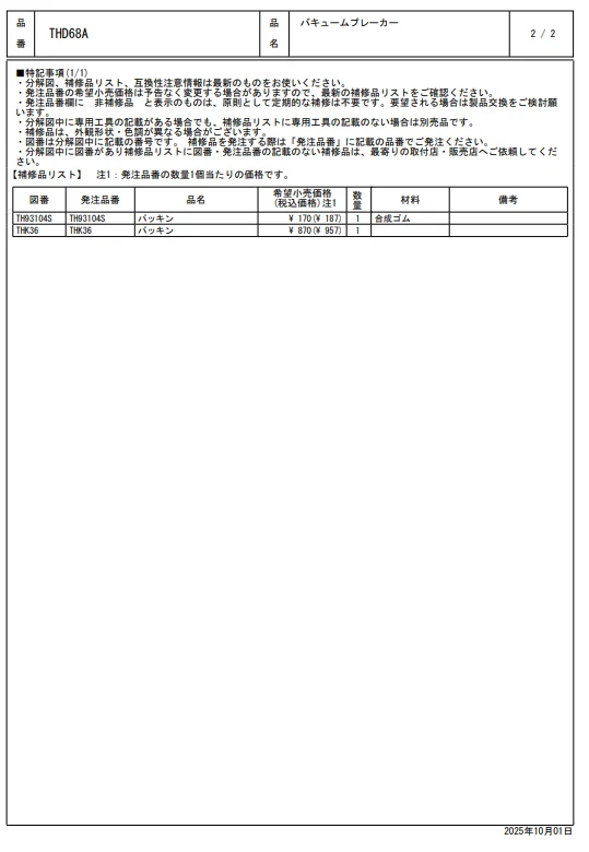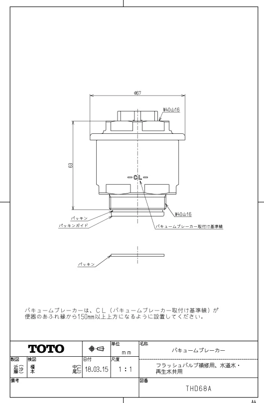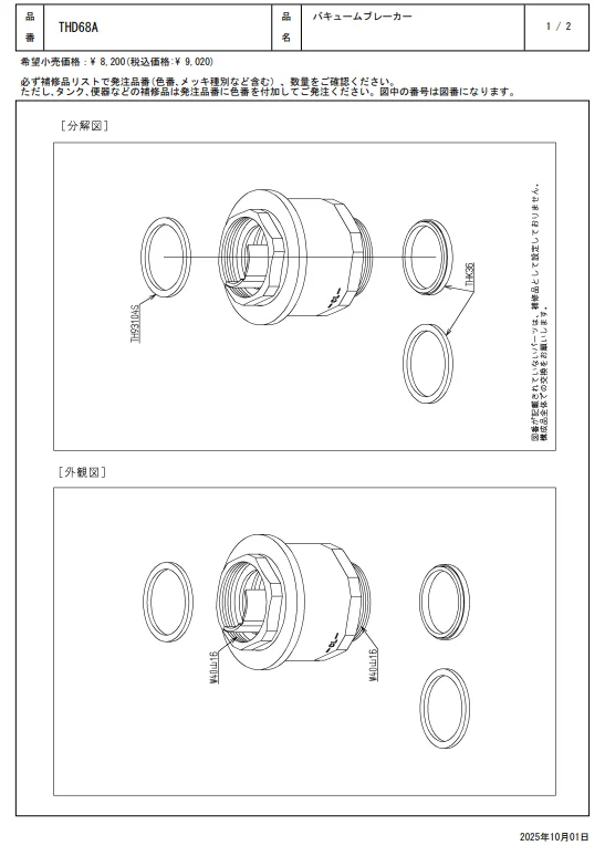 THD68A TOTO 純正部品 バキュームブレーカー フラッシュバルブ補修用