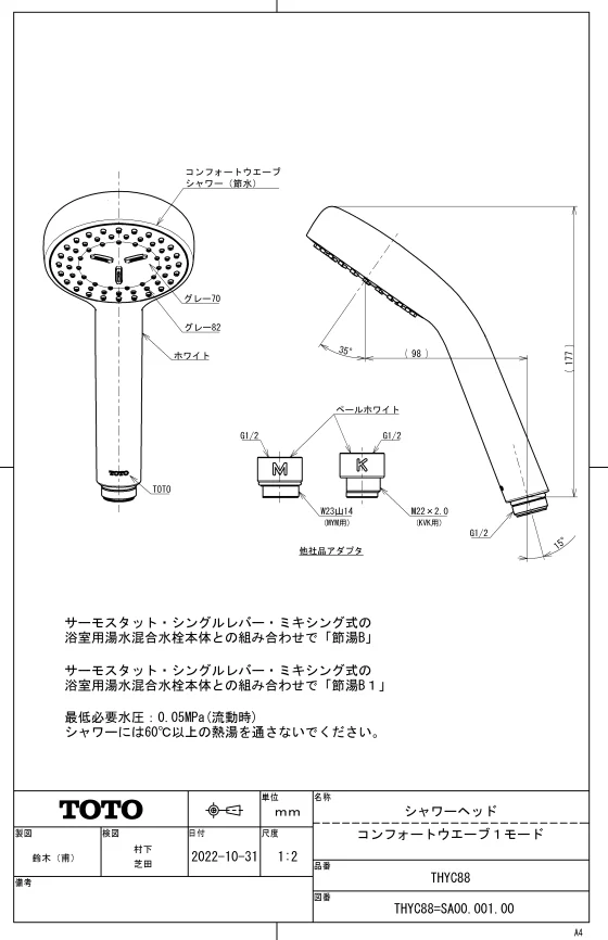 THYC88 TOTO 純正部品 シャワーヘッド 浴室用シャワーヘッド・ホース類部品