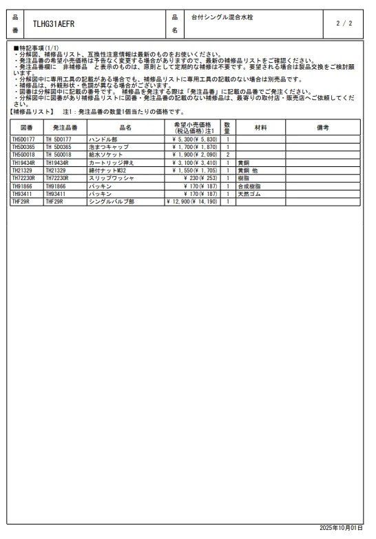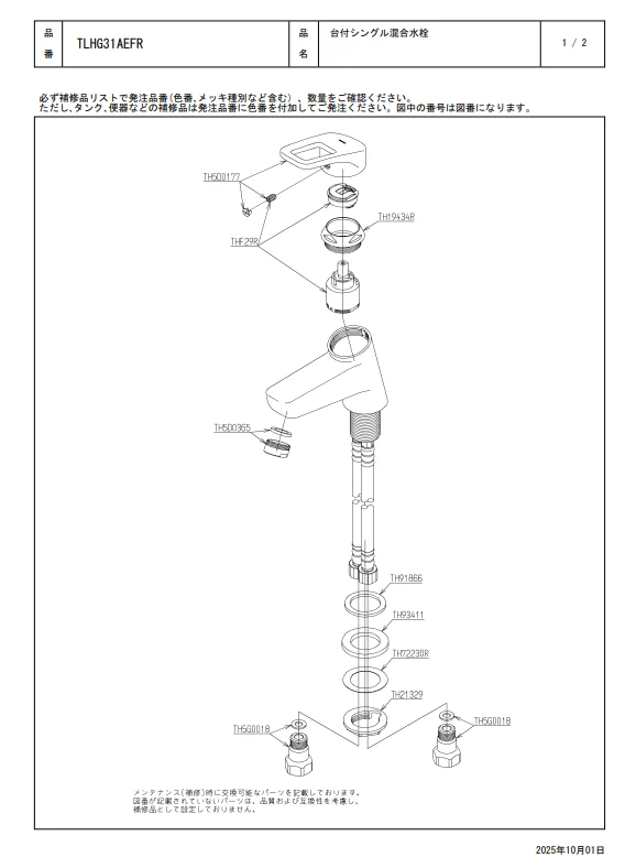 TLHG31AEFR TOTO 純正部品 台付シングル混合水栓 エコシングル ポップアップ