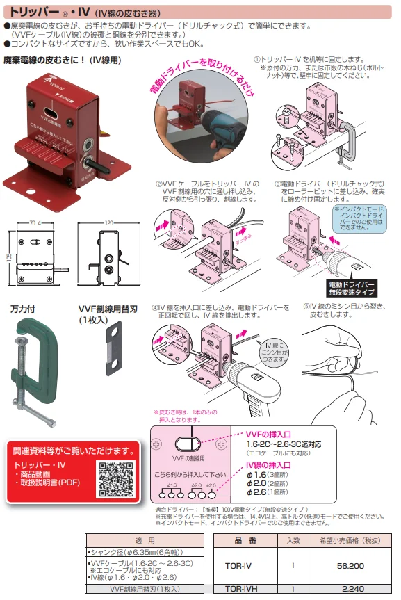 TOR-IV 未来工業 トリッパー IV 廃棄電線(IV線)の皮むき器