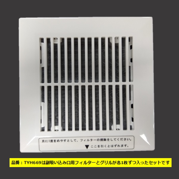 TYH669はTOTO(トートー)の副吸い込み口グリルとフィルターが各1枚ずつ入ったセットです