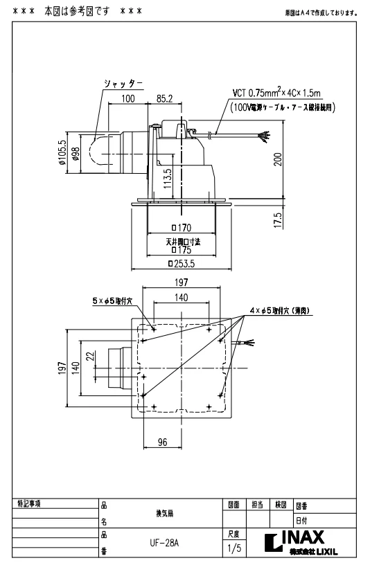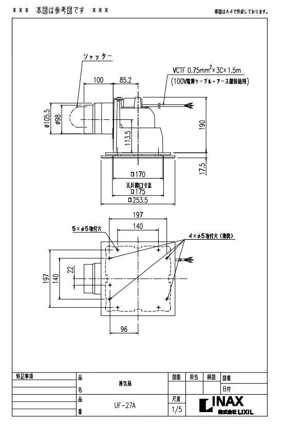 UF-27A LIXIL・INAX 天井換気扇 浴室部品 brdp