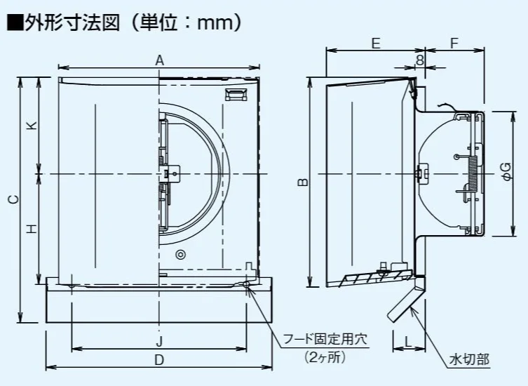 VB-BBG150SA2 シルバーメタリック パナソニックエコシステムズベンテック 純正品 ピタンコフード Φ150用 ステンレス製 防火ダンパー・着脱ガラリ付 対塩害