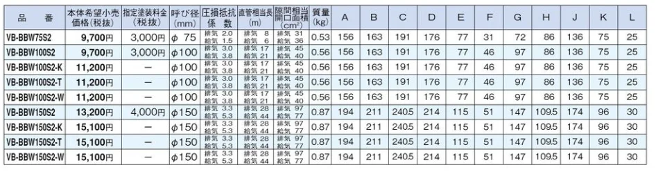 - その他: 対塩害 角形 着脱ガラリ・防虫網付 (※防火ダンパーなし)