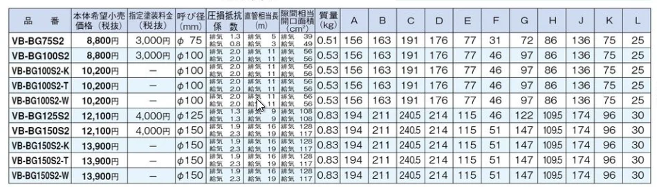 - その他: 対塩害 角形 着脱ガラリ付 (※防火ダンパーなし)