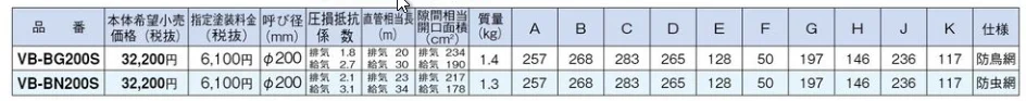 - その他: 対塩害 角形 着脱防鳥網付(※防火ダンパーなし)