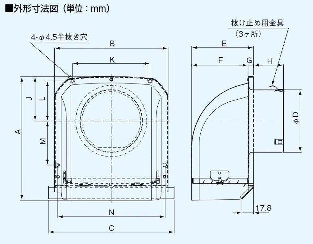 - その他: 着脱ガラリ付(防火ダンパーなし)