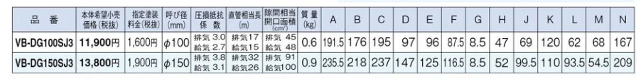 - その他: 着脱ガラリ付(防火ダンパーなし)
