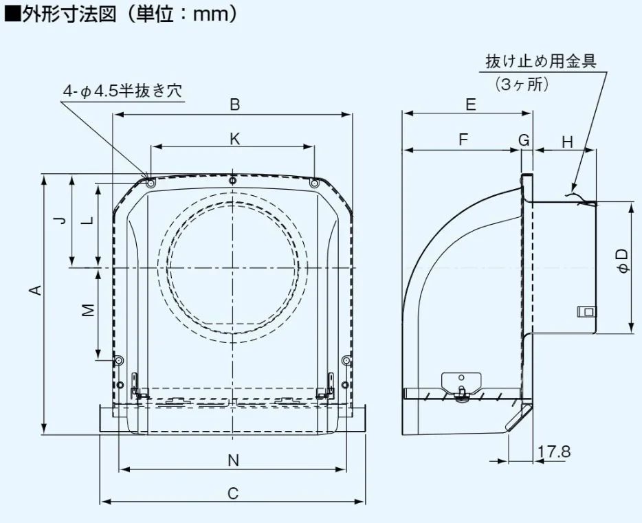 - その他: 着脱ガラリ付(防火ダンパーなし)