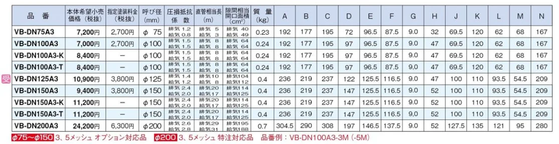 - その他: 着脱防虫網付(防火ダンパーなし)