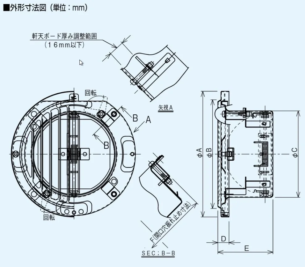 軒天用ボードの厚み16mm以下で挟み込み取り付け可能