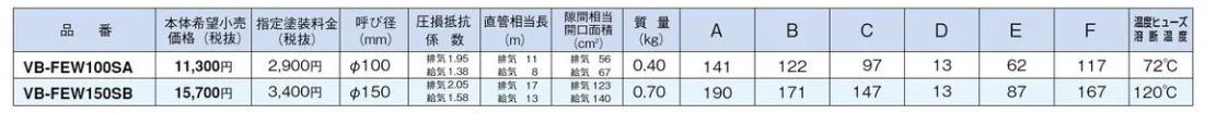 - その他: 対塩害 防火ダンパー・ガラリ・防虫網付