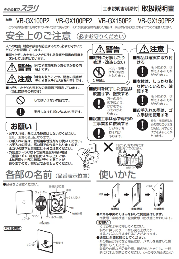 VB-YA1001-TS(給気清浄フィルター)以外のフィルターを取り付ける際に必要です。