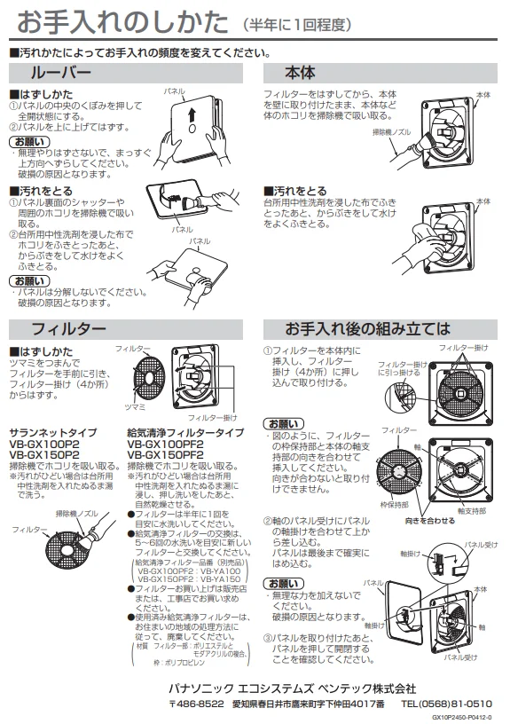 VB-YA100FW1-TS パナソニック 純正部品 別売フィルター枠 (1個入り) VB-YA100FW同等品