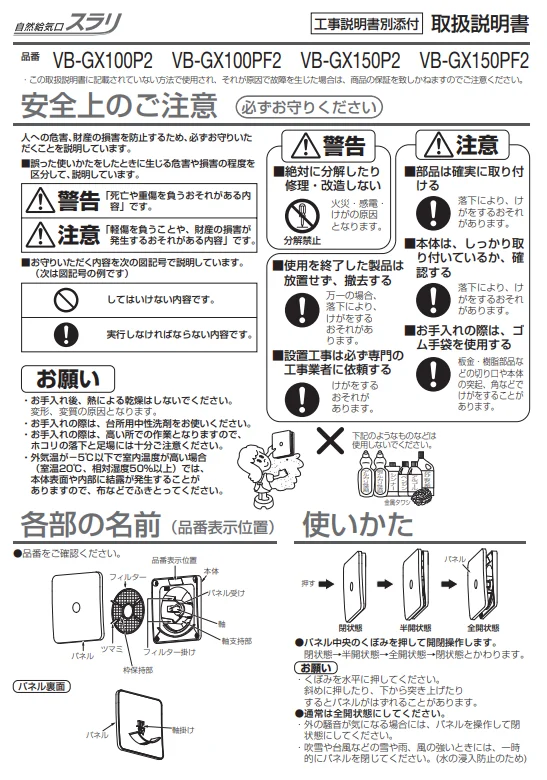 VB-YA150-TS(給気清浄フィルター)以外のフィルターを取り付ける際に必要です。