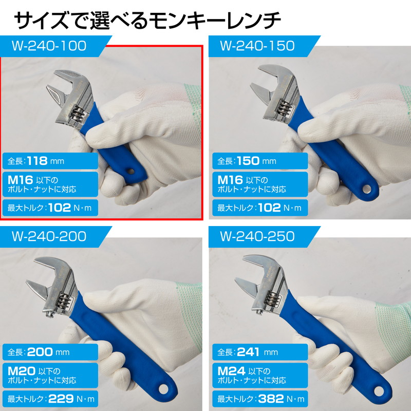W-240-100 ホーザン 新品 モンキーレンチ HOZAN