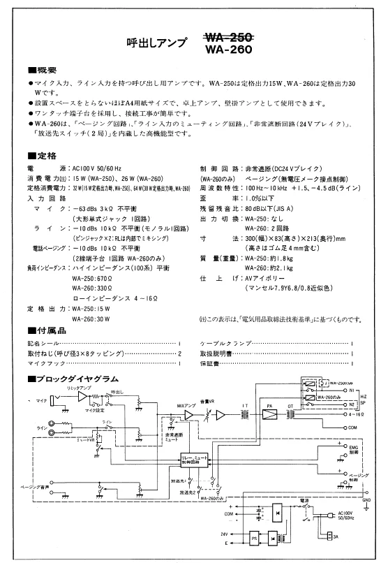 WA-260 呼出しアンプ(多機能タイプ) 30 W