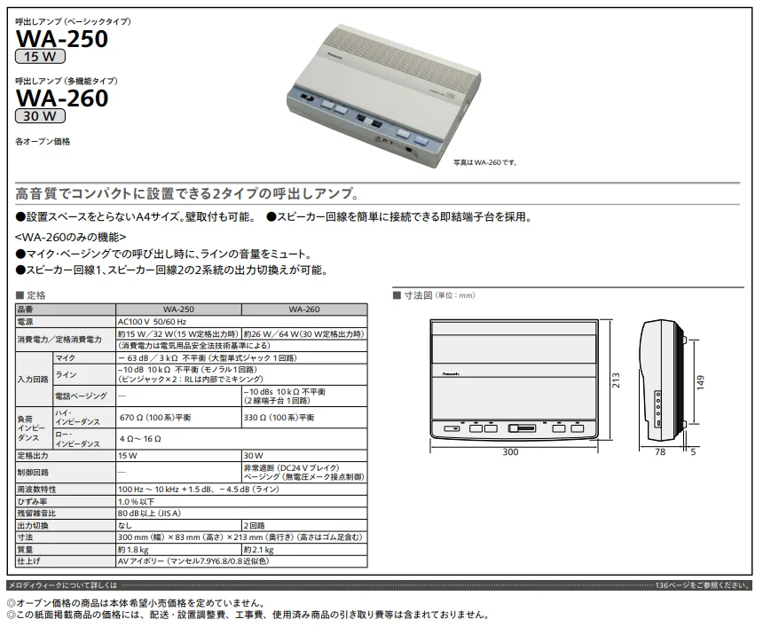WA-260 呼出しアンプ(多機能タイプ) パナソニック 音響設備