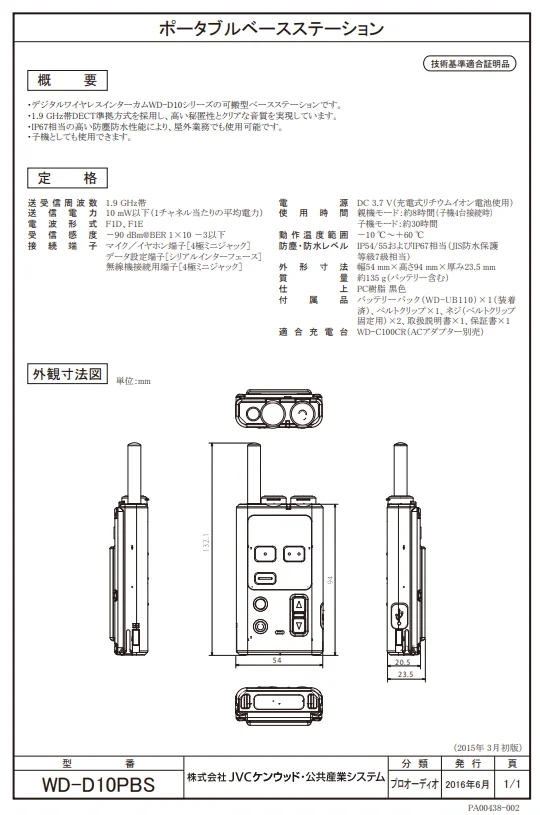 WD-D10TR JVCケンウッド ポータブルトランシーバー
