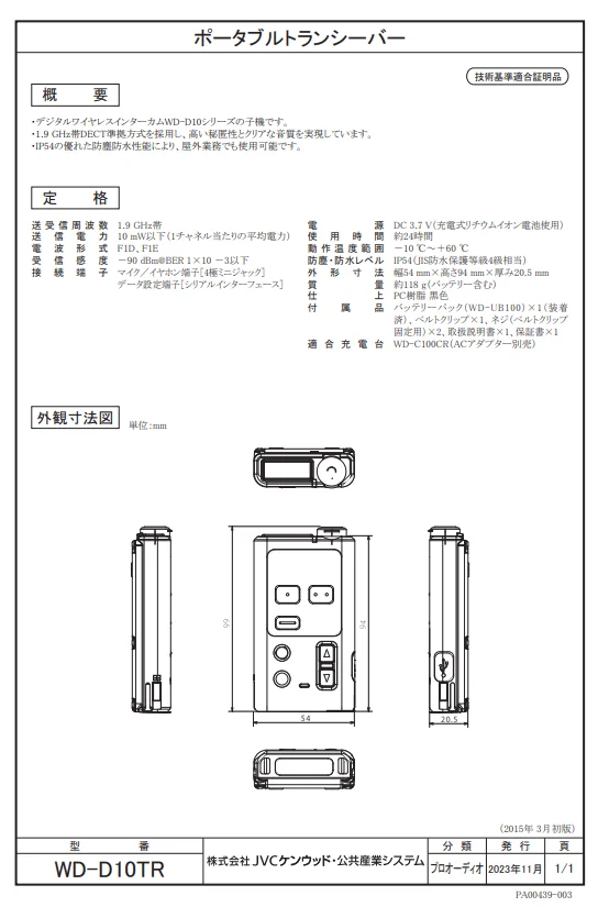 WD-D10TR JVCケンウッド ポータブルトランシーバー