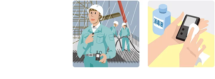 デジタルならではの高品質通話で、より確実なコミュニケーションが可能です。また、Wi-Fi環境に影響されない1.9GHz帯を使用しているので、無線LAN機器が設置、または持ち込まれる場所でも干渉することなく使用できます。