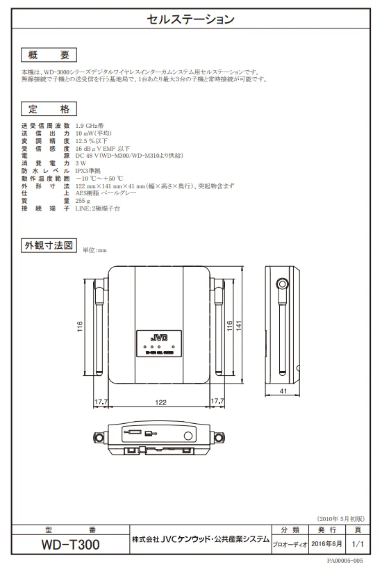 本機は、WD-3000シリーズデジタルワイヤレスインターカムシステム用セルステーションです。
