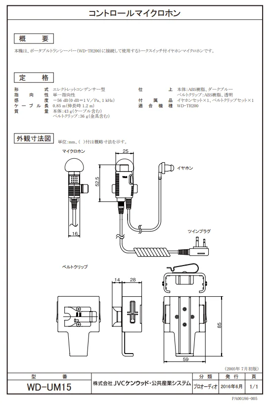 WD-UM15 JVCケンウッド コントロールマイクロホン(タイピン接話型)