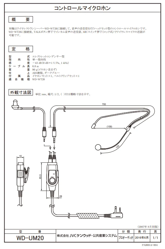 WD-UM20 JVCケンウッド コントロールマイクロホン