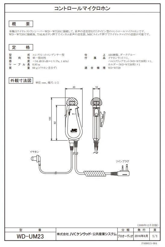WD-UM23 JVCケンウッド コントロールマイクロホン