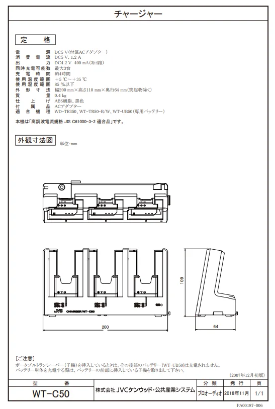 | 外形寸法 | 幅200mm×高さ110mm×奥行64mm |