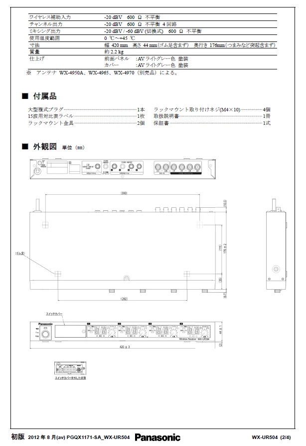 WX-UR504 800 MHz帯PLLノイズリダクション方式 800 MHz ダイバシティワイヤレス受信機 パナソニック 音響設備