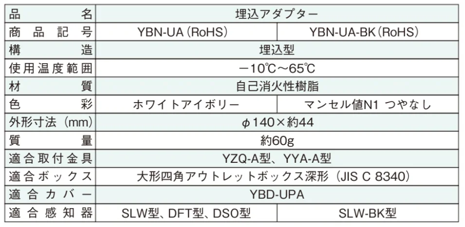 YBN-UA (RoHS) ホーチキ 埋込アダプタ 【送料全国一律275円】
