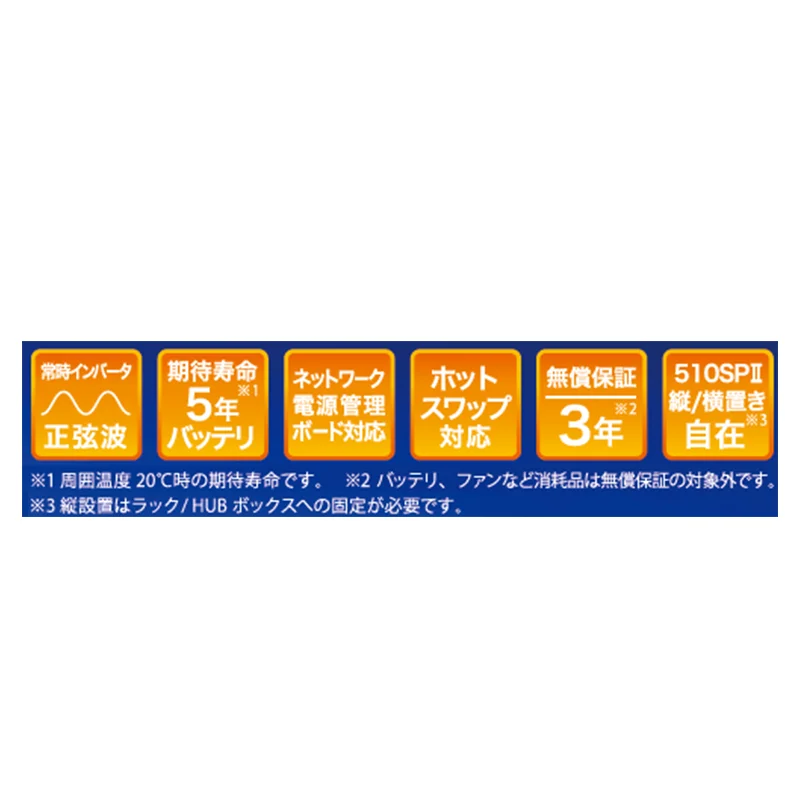 | 給電方式 | エコモード搭載、常時インバータ給電、正弦波出力 | ||||