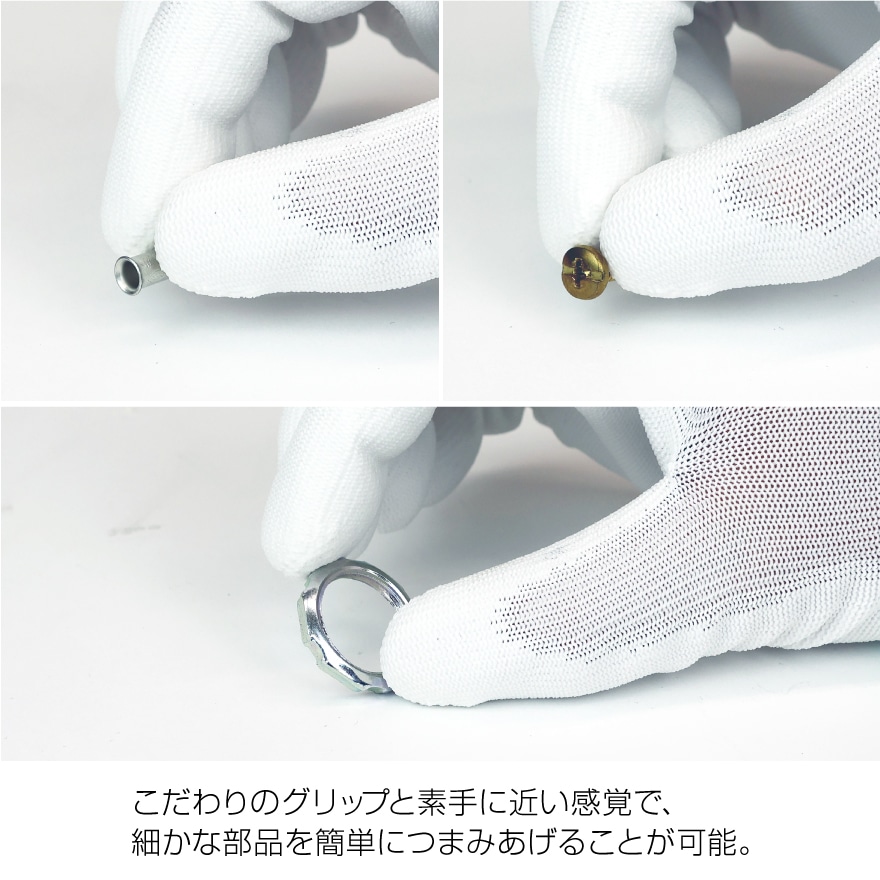 手のひら側にポリウレタンをコーティングし、細かい部品も簡単につまみ上げることが可能。