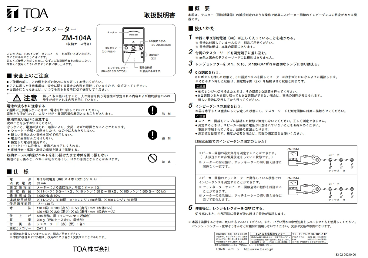 ZM-104A TOA インピーダンスメーター